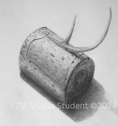 ABOVE: Dusty, a retired student created a drawing of a wooden box with an antler handle using the LZM Studio Drawing Method.